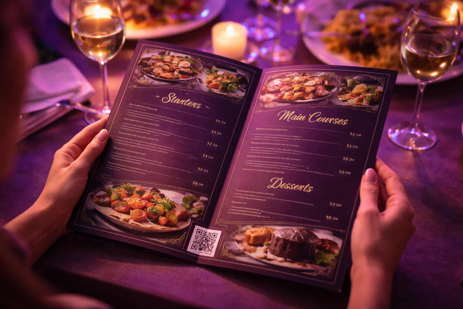 Diseñamos tu carta desde cero, tanto para imprimir como para consultar desde el móvil. Generamos el QR de la carta. Cuidamos la estructura, el diseño y la presentación para que la experiencia empiece antes de comer.